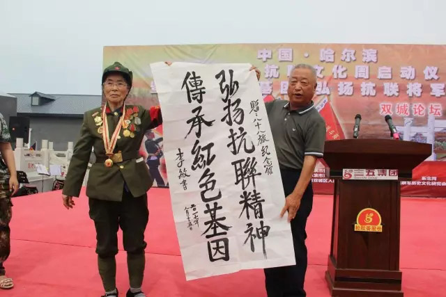 【香港商報網訊】15日,為隆重紀念抗日戰爭勝利72周年,中國·哈爾濱首屆東北抗聯文化周啟動儀式暨傳承紅色基因、弘揚抗聯將軍精神雙城論壇在雙城隆重舉行。