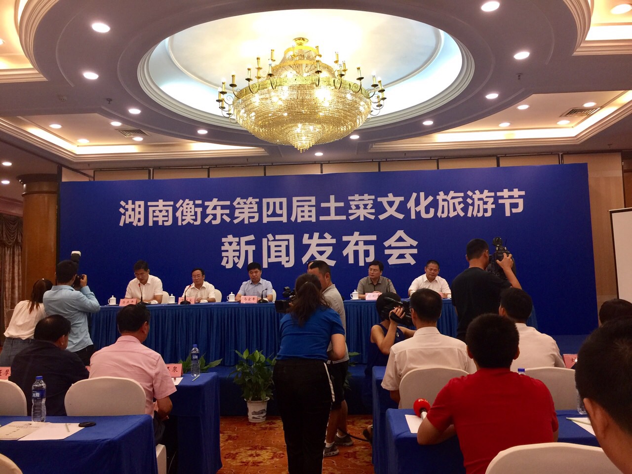 衡東縣委宣傳部長呂正平主持發布會,衡東縣長徐志毅致開幕辭,著重介紹了衡東土菜的特色。衡東土菜以“鮮、辣、美,便”而著稱,是湘菜系列的重要組成部分。近年來,衡東通過舉辦三屆土菜文化節,推動了土菜、文化與旅遊三者的融合發展,引起了廣大遊客與美食家的特別關注。為進一步打造中國土菜名縣的金字招牌、挖掘土菜文化內涵、延伸土菜產業鏈條、提升土菜品質、有效整合旅遊資源、著力打造旅遊品牌、助推衡東經濟社會發展,衡東縣決定舉行衡東第四屆土菜文化旅遊節。目前,各項工作有條不紊推出,節會將於9月20日至21日在衡東縣城全面展開,誠邀天下朋友來吃土菜、觀美景、品文化。