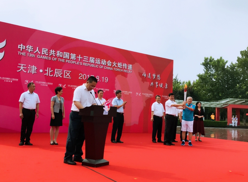 北辰区火炬传递仪式共有35名火炬手参与其中,他们来自各行各业,通过第十三届全运会的圣火传递传播“健康天津,全运惠民”的全民参与理念。
