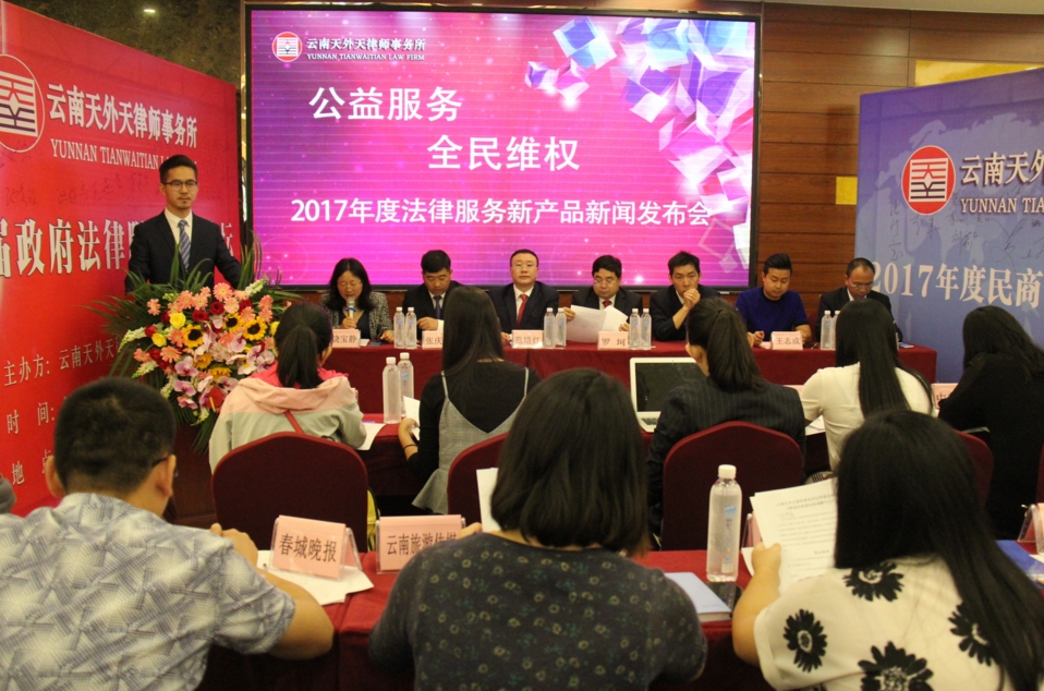 【香港商报网讯】19日,记者从2017年度法律服务新产品新闻发布会上获悉,云南天外天律师事务所将推出《简易民商事纠纷调解中心》、《游客维权法律服务中心》等四种公益法律服务模式,旨在推进全面依法治国战略的实施,主动承担社会责任与社会公益。