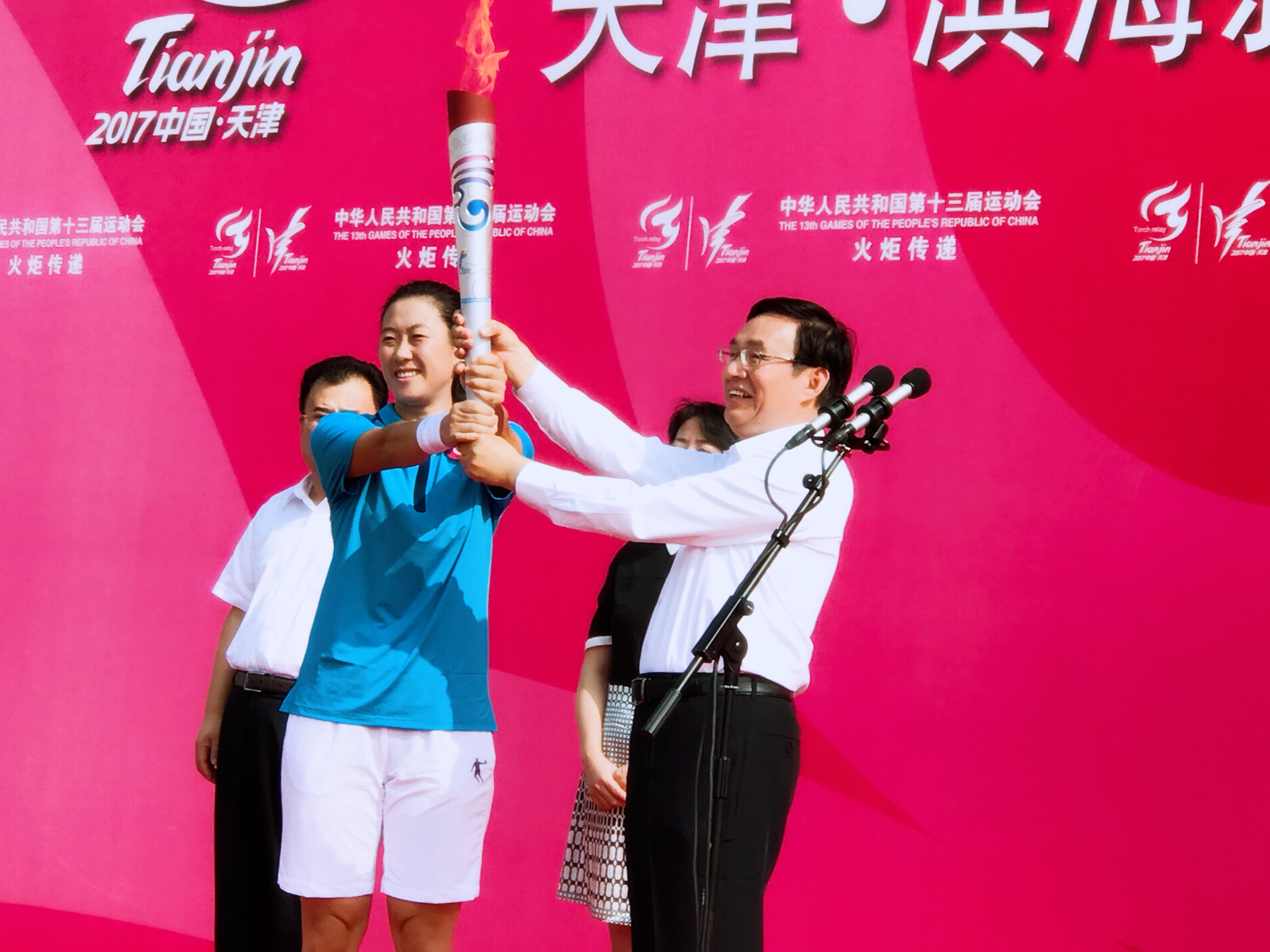 【香港商報網訊】記者邢寶華報道:傳遞榮耀夢想,點燃濱海激情。8月20日上午9:00,中華人民共和國第十三屆運動會火炬傳遞活動進入到第十三站,全運聖火來到天津市濱海新區進行傳遞。隨著首棒火炬手、擊劍世界冠軍譚雪從天津市委常委、濱海新區區委書記張玉卓手中接過火炬,第十三屆全運火炬傳遞濱海新區站正式拉開帷幕。