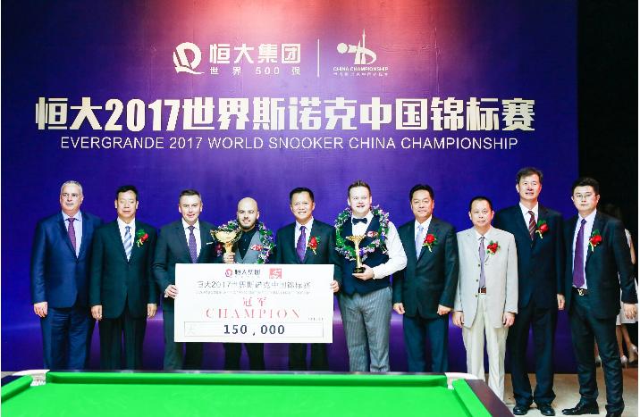 恒大2017 世界斯诺克中国锦标赛是由恒大集团独家承办的国际A级赛事,今年由邀请赛升格为积分排名赛,并创下五大纪录:规格最高、发展最快、奖金最高、阵容最强、影响最广。