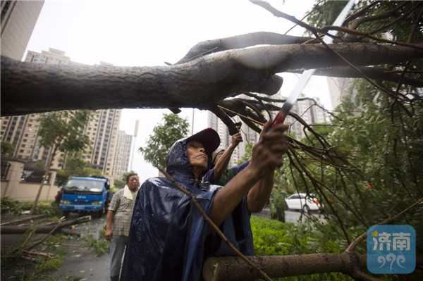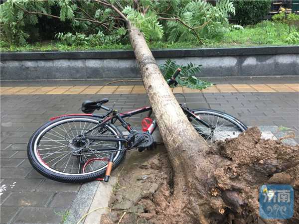 他们从清源路开始沿齐州路往南巡查、抢险,到烟台路路口时已经清理了4棵被风吹倒的大树。