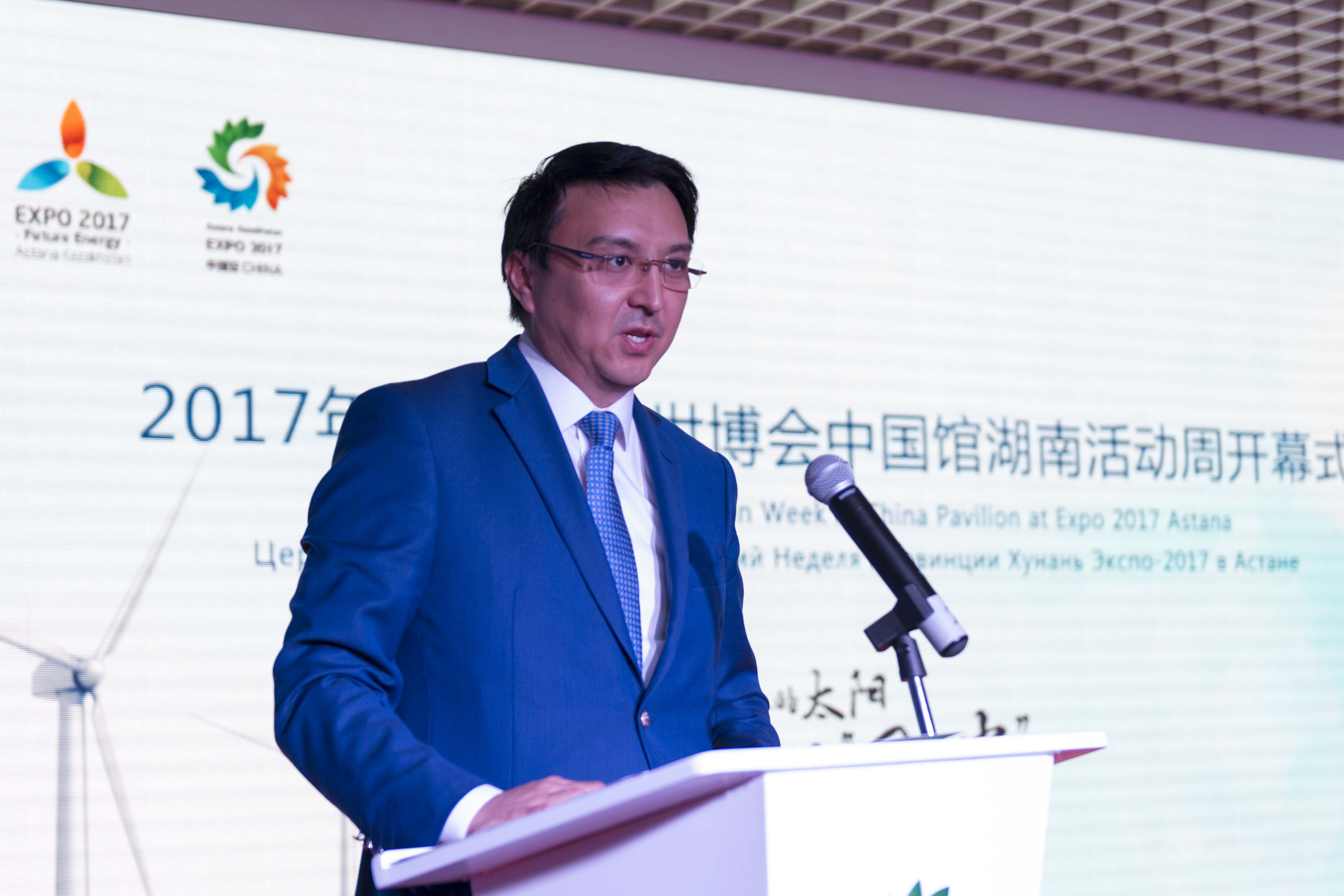 湖南省政协副主席欧阳斌,中国驻哈萨克斯坦大使张汉晖,中国国际商会秘书长于健龙,哈萨克斯坦农业部副部长伊萨耶娃等中哈两国官员、企业界人士以及世博会各国国家馆代表300多人出席了开幕式。