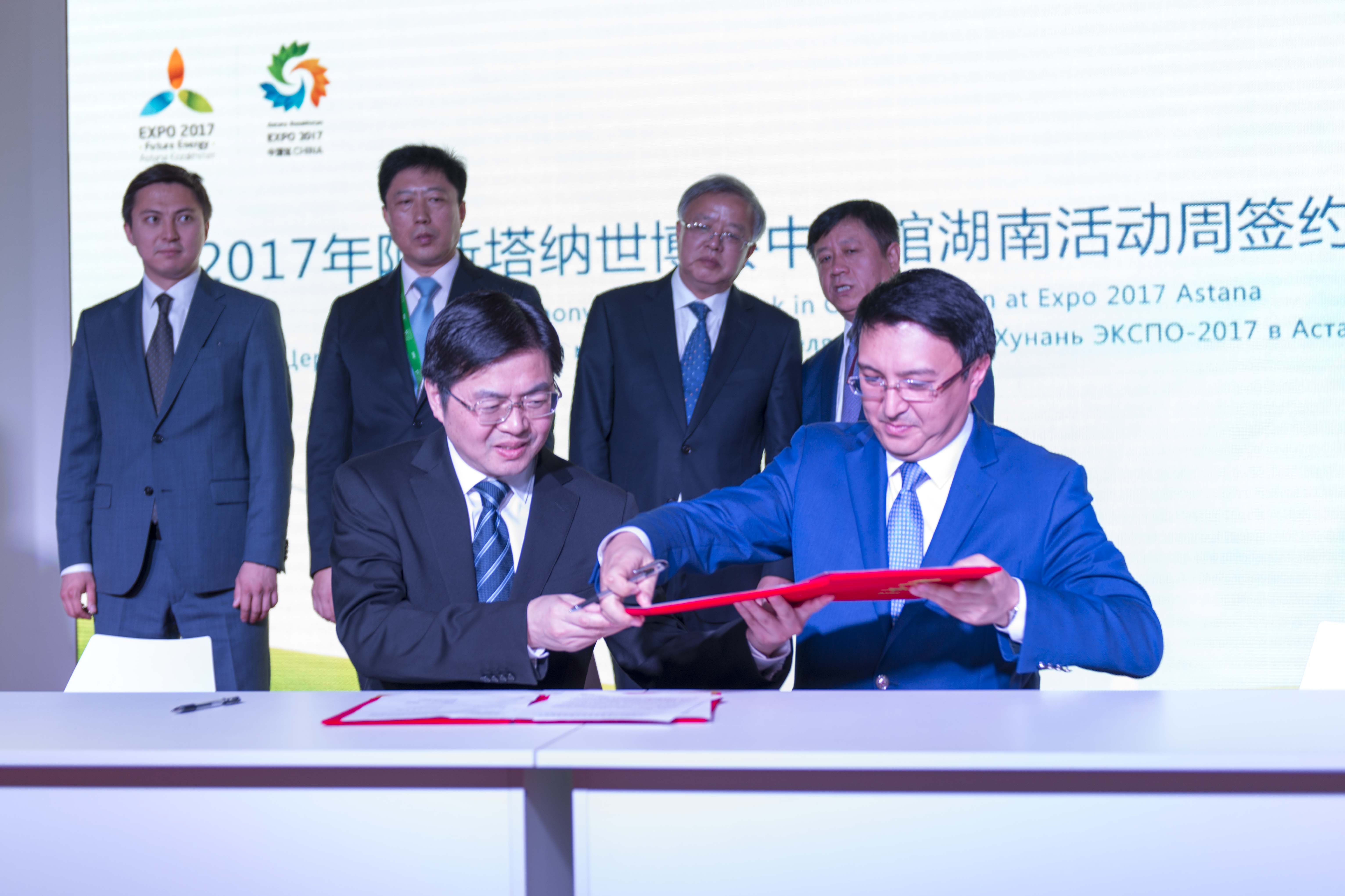 经过前期努力,活动周开幕式上5个项目现场签约:中国贸促会湖南省分会(湖南国际商会)与哈萨克斯坦国际商会签订战略合作协议;中国三一集团有限公司与哈萨克斯坦哲瑞克能源公司签订共同开发哈萨克斯坦风能源合作协议,投资总额6000万美元;中国威胜集团与哈萨克斯坦ISS集团签订合资生产水、电、气、热智能仪表合作协议;湖南湘江新区发展集团与哈萨克斯坦投资股份有限公司签订投资项目备忘录;湖南湘江新区发展集团与哈萨克斯坦埃德尔韦斯投资有限责任公司签订实施《在阿克斯莫拉州发展农业和畜牧业》项目合作协议书。