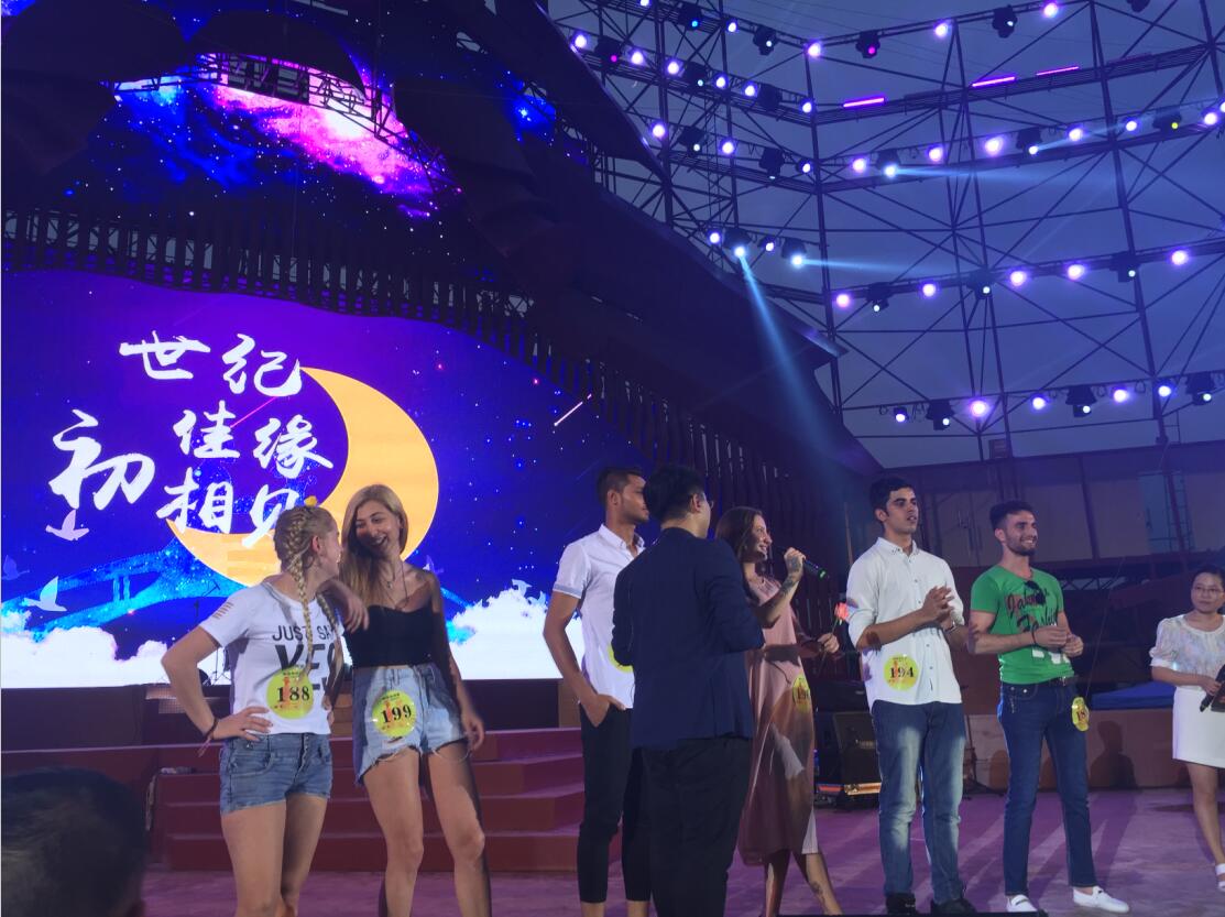 狂歡夜活動上,青年們以組為單位先后進行了錦上添花、尋找緣分貼、情侶優選初識、默契大考驗,配對情侶參與游戲奪取唇印,相互配合參與《快樂大本營》游戲高空穿衣、枕頭大戰、心跳百分百等多種活潑有趣的互動游戲,增進彼此尋找心儀的對象。20名來自俄羅斯、烏克蘭的單身男女,與300名中國男女青年借中國七夕情人節之緣搭臺牽線,中外單身青年跨越千里,邂逅羅文花海,浪漫花海中成就美好姻緣,尋找人生伴侶。