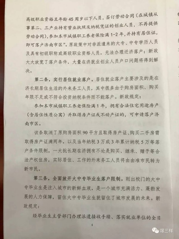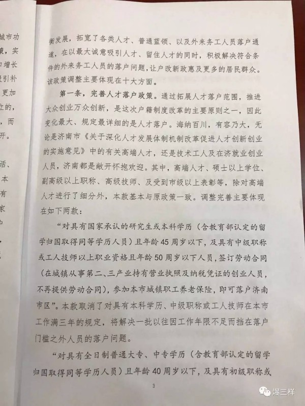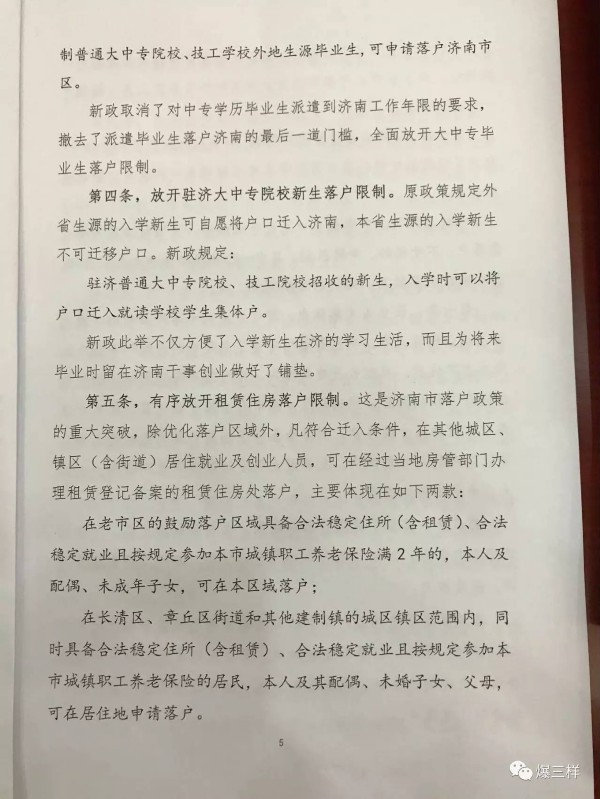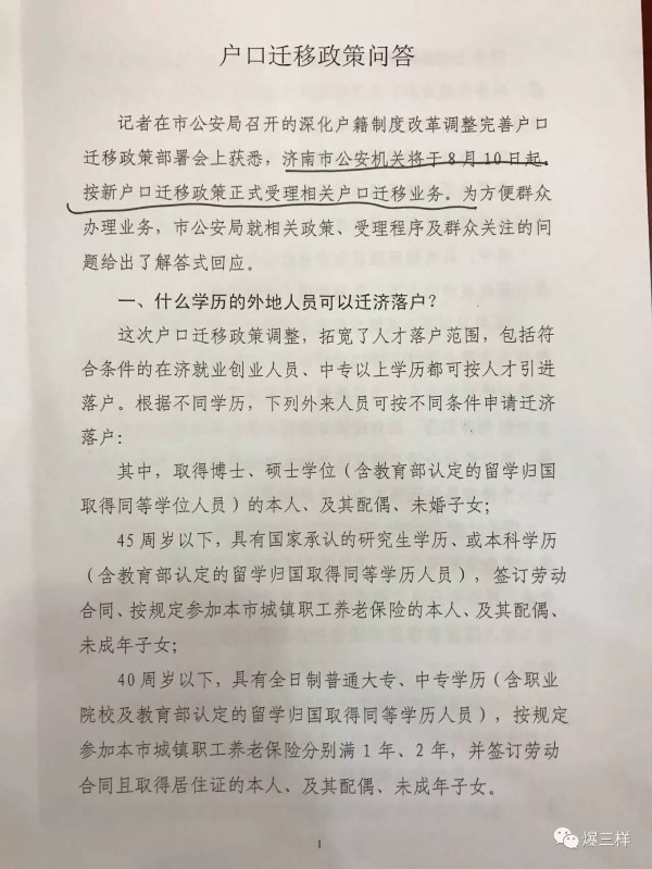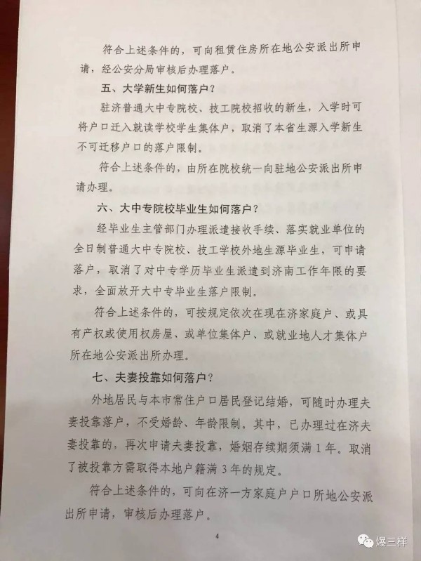 大眾網記者今天(10日)從濟南市公安局召開的深化戶籍制度改革調整完善戶口遷移政策部署會上獲悉,濟南市公安局將從今天(8月10日)起,按新的戶口遷移政策正式受理相關戶口遷移業務。這意味著原先的“高學曆”“購房需滿90平米”等落戶限制均將放開,本科生、大中專生,以及購房不足90平米、甚至長期租房的在濟居住、工作人員都可以辦理落戶了。(大眾網-山東24小時客戶端記者 樊思思)