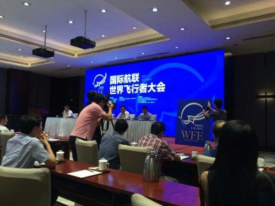 此次發布會首次對外公布了“2017國際航聯世界飛行者大會”的標識。主體形象是展翅翱翔的飛鷹,由漢字“人”和“飛”衍生出英文W和F。關于大會的吉祥物、口號和會歌目前還在征集中。