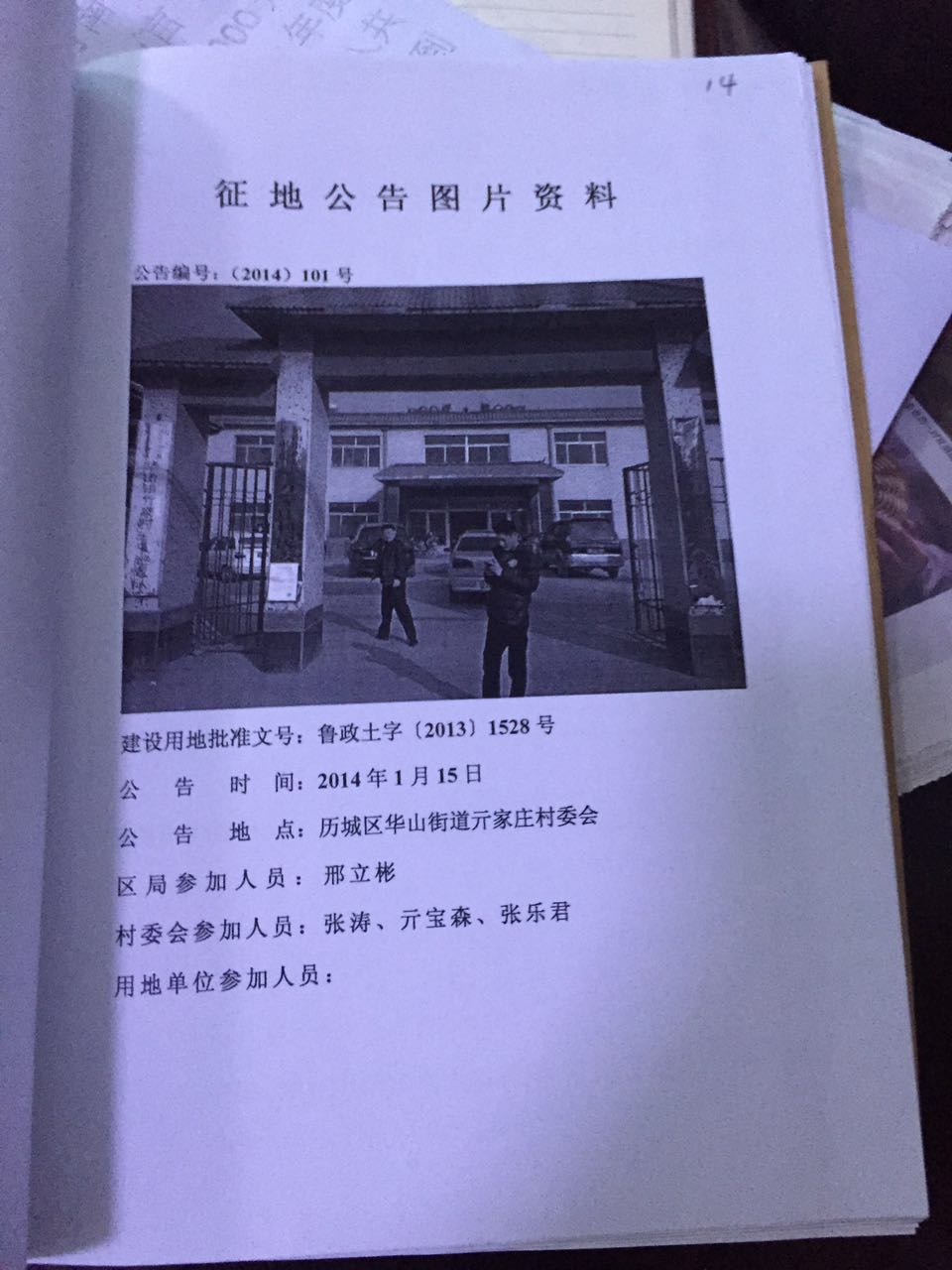 對此,李所長開始有了“不肯定”的回複:“征地的相關資料、必備要件,都在我們這裏。征地過程中,村委會應該履行這項工作,是否履行完了,不是由我們來檢查。公告是由國土資源局、市政府張貼的。國土資源所隸屬曆城區國土資源局。公告發布之後,我們到村裏,跟村兩委講解清楚,該對接的我們都對接了,村民知不知情,我不知道。”