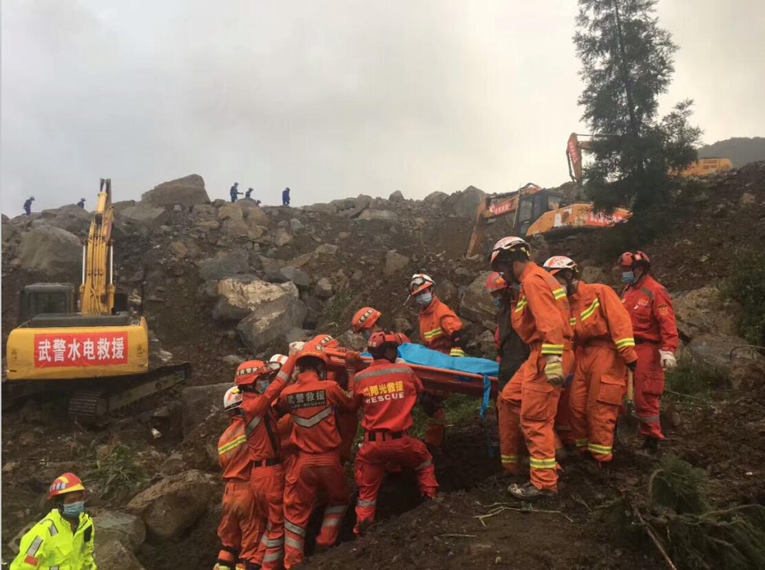 據了解,此次崩塌山體距離災害地垂直落差約200米,崩塌巖體約為60余萬立方米。災害發生后,當地組織專業力量全力以赴晝夜不休開展救援。目前已組織2000余人參與搶險救援,其中武警250人、消防200人、水電武警117人、交通武警136人、公安800人、民兵預備役120人,衛生防疫、地災應急、供電通訊、機關干部等其他各類救援人員近600人,已投入大型機械30臺、其他各類救援車輛90余臺,生命探測儀20臺、無人機8臺、搜救犬7條。
