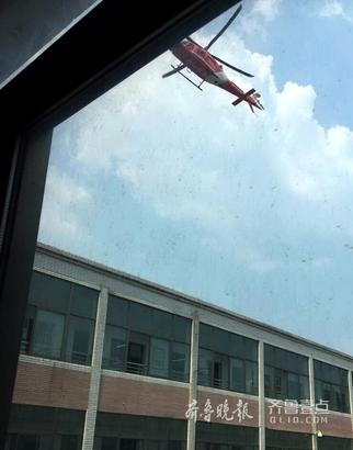 16日上午九點半和下午3點左右,濟南山師大二附中的孩子們被一陣陣巨大的轟鳴聲震驚。原來是隔壁的省中醫空中120直升機在訓練起降,還時不時在教學樓上方盤旋,每次訓練大約半小時。
