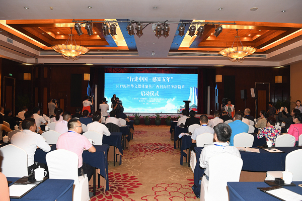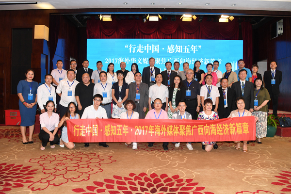 【香港商報網訊】記者歐陽萍報道:9月4日,“‘行走中國•感知五年’2017海外華文媒體聚焦廣西向海經濟新篇章”活動在廣西南寧市啟動。來自美國、加拿大、西班牙、瑞典、意大利、葡萄牙、匈牙利、日本、印度尼西亞、馬來西亞、泰國、越南、菲律賓、柬埔寨、澳大利亞、加納等五大洲20多個國家和地區的51家華文媒體高層和記者將在未來一周走進南寧、崇左等地,通過實地參觀考察,聚焦廣西社會經濟發展,向世界展示廣西在推動“一帶一路”建設中取得的新成果。