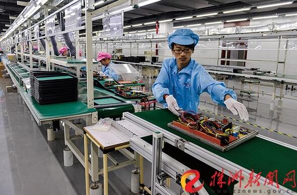 ▲ 在長城電腦株洲基地,生產線上工人們在工作。 (劉震 攝)