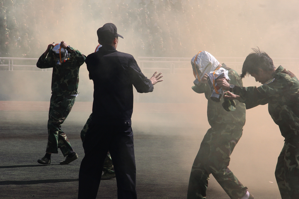 黑大2017級新生進行消防滅火、逃生實戰演練