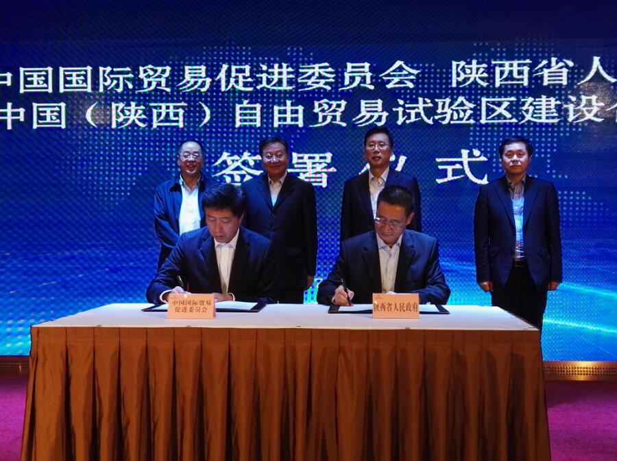 陝西省人民政府與中國國際貿易促進委員會簽署《推進中國(陝西)自由貿易試驗區建設合作備忘錄》。