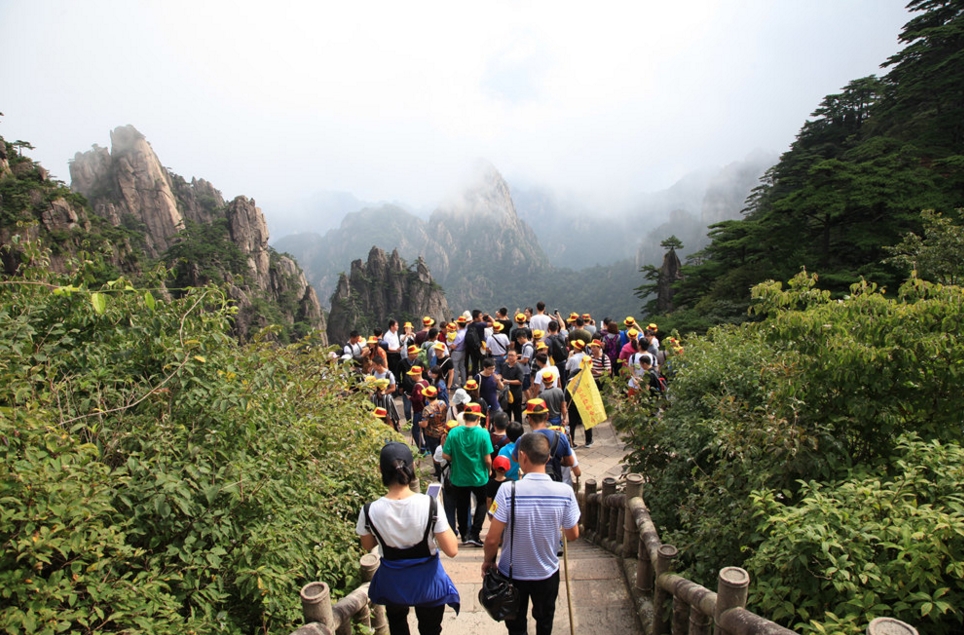 从当天起至9月17日,安徽、上海、山东、河南、湖北、江西、湖南、山西、福建九省及南京、苏州、徐州、淮安、扬州、宁波、温州、金华、湖州九市的游客来黄山风景区旅游均可享受99元/人的景区优惠门票,不少游客提前了解相关优惠政策,纷纷组团来到黄山,也有游客到了黄山才发现有活动,意外惊喜。