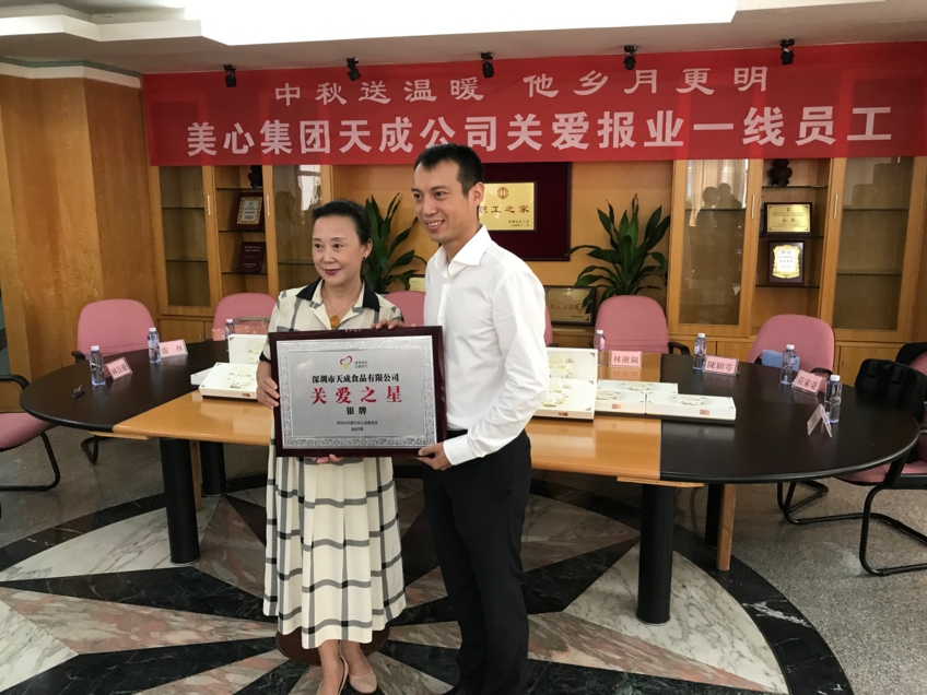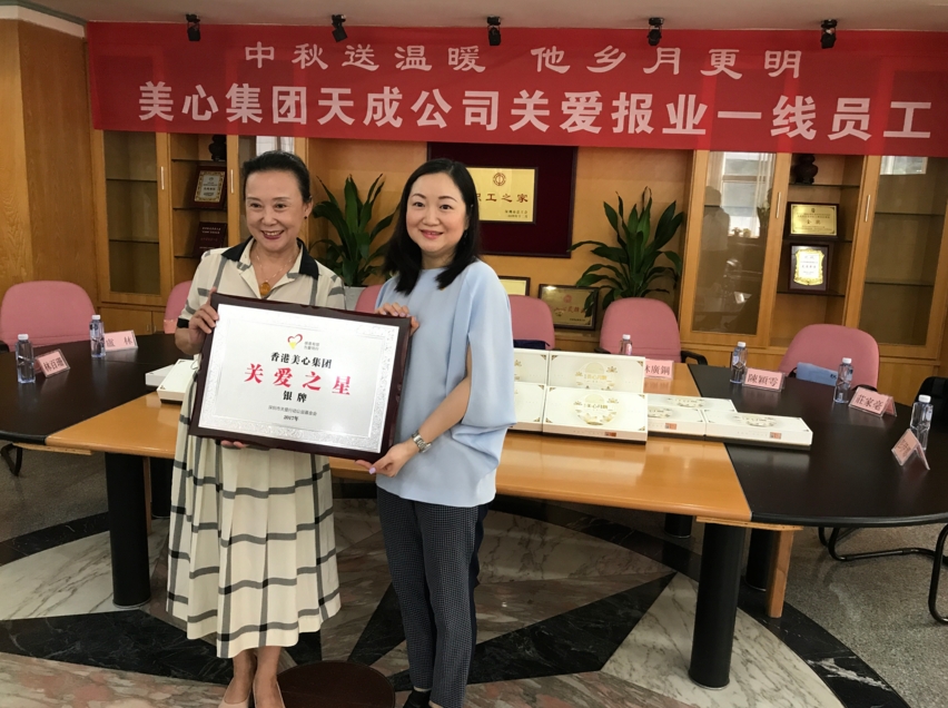 深圳市关爱行动公益基金会向香港美心、天成公司赠送“关爱之星”牌匾