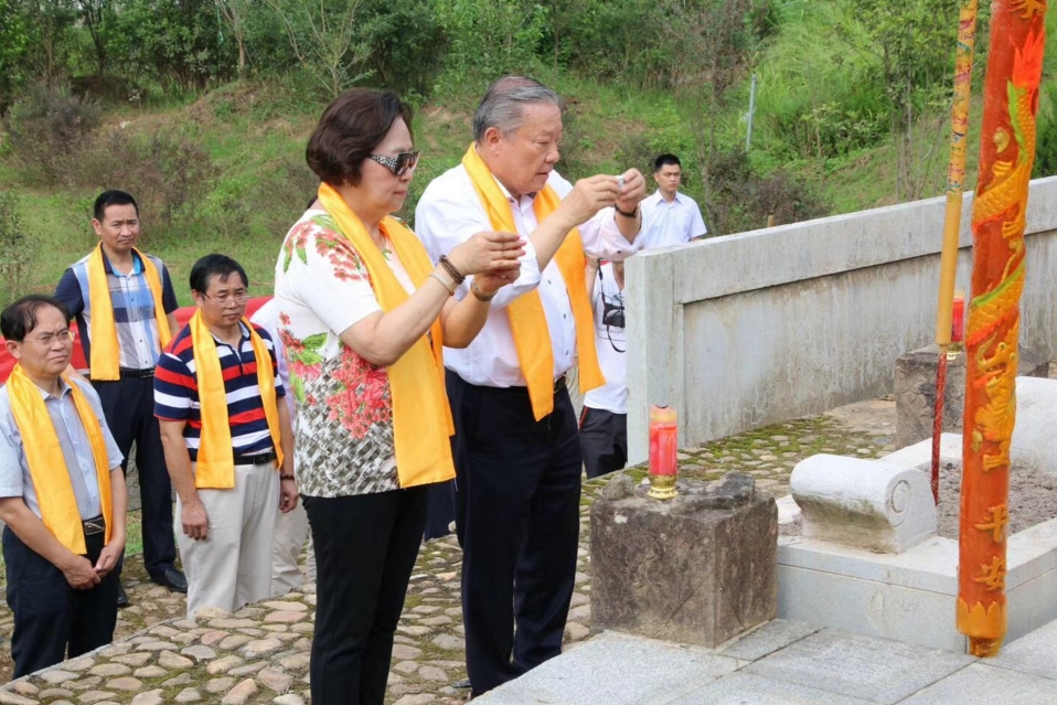 篁墩村程灵洗古墓园。已70多岁高龄的程万琦携夫人马瑷莉女士一起,接受当地程氏宗亲的礼仪后,向先祖敬献花篮、聆听祭文、焚香行礼、燃放礼炮……老人动作规范、心灵虔诚。