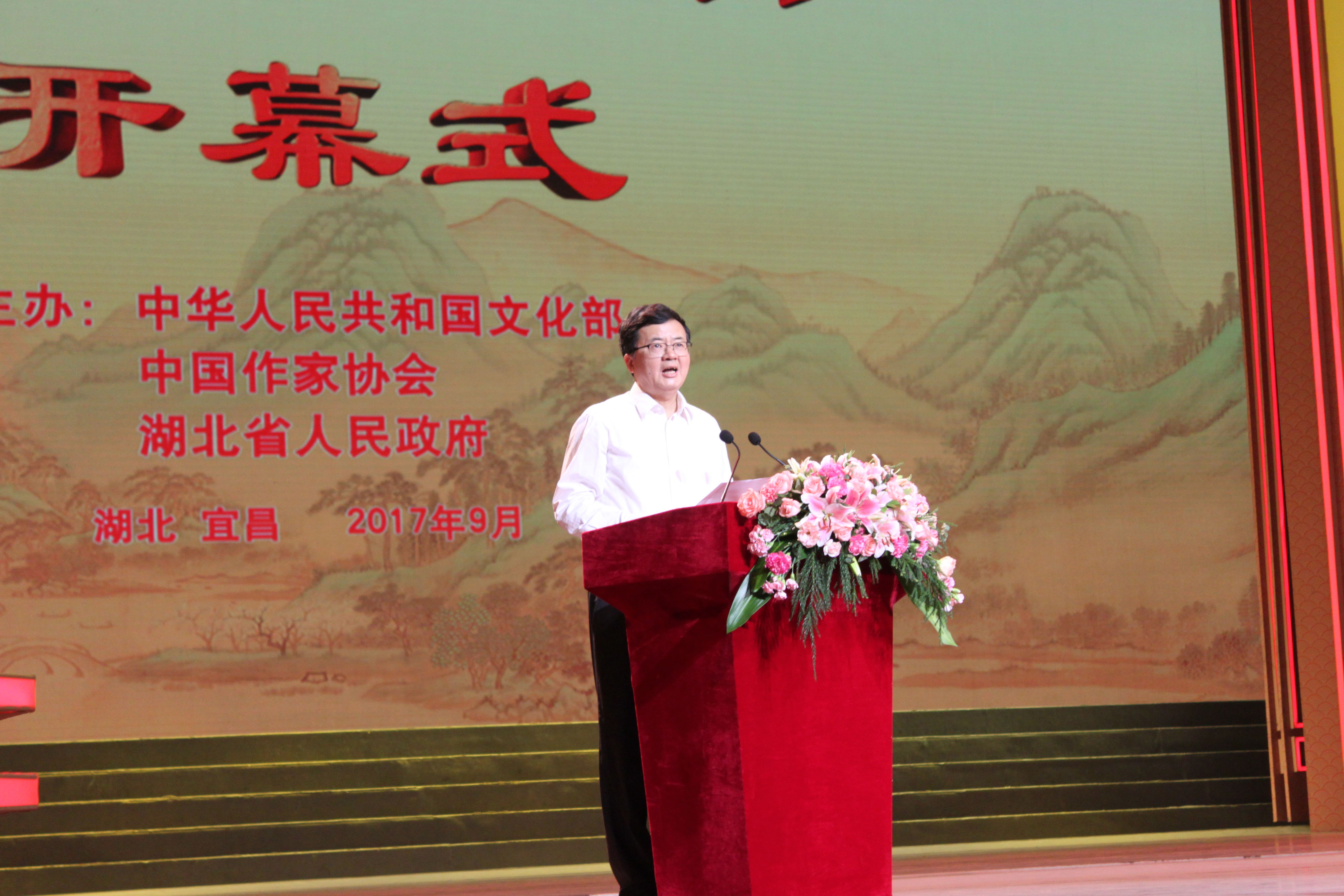【香港商报网讯】诗咏盛世,圆梦中华。9月12日晚,由文化部、中国作家协会和湖北省人民政府主办的第五届中国诗歌节在湖北省宜昌市隆重开幕。来自全国各地的嘉宾朋友与全市人民共同参与盛会,享受诗歌盛宴。文化部党组书记、部长雒树刚出席开幕式并宣布开幕,文化部党组成员、副部长董伟,中国作家协会党组成员、副主席吉狄马加出席开幕式并致辞。