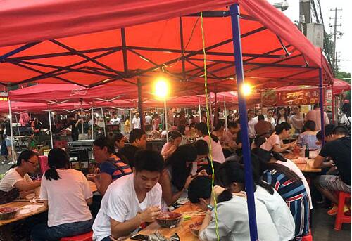 每天晚上,位于南昌经开区枫林大道和紫荆路交界处的紫荆夜市都是热闹非凡,不仅周边高校有大学生在这里消费,甚至很多南昌市民都慕名而来吃夜宵、撸串。摊贩们经常要忙到凌晨2点多,才收起简易棚子,回家休息。