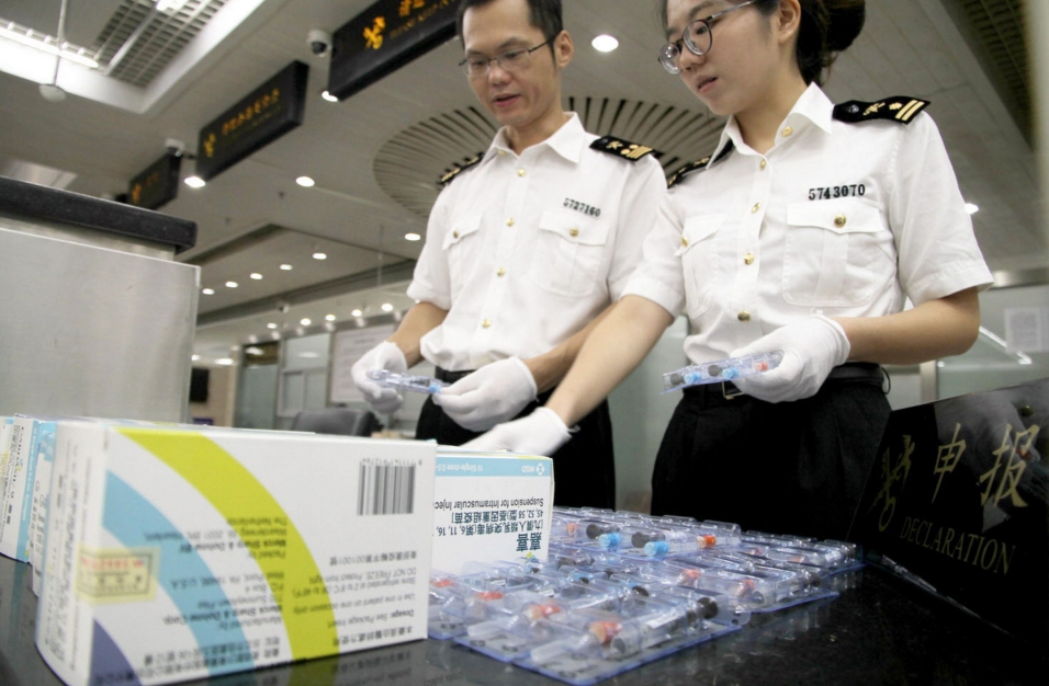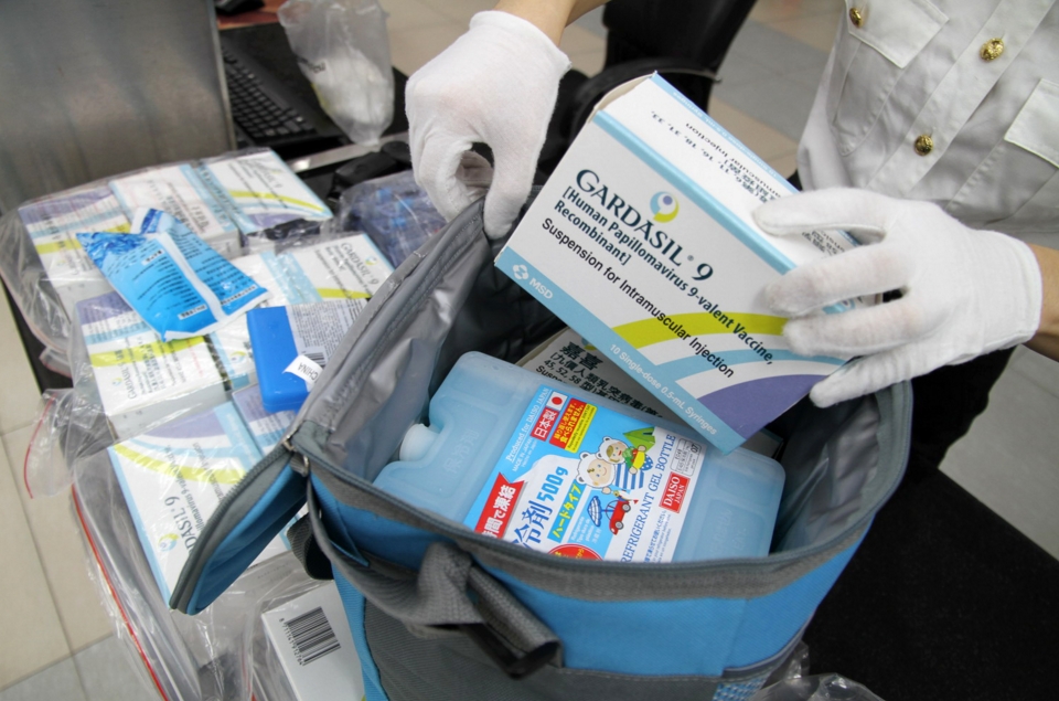 海关关员现场截获未经检疫的宫颈癌疫苗。