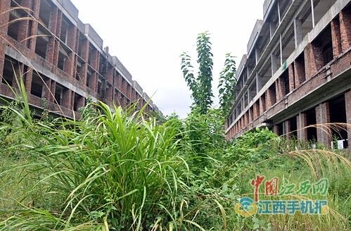 本报九江讯 记者曹诚平摄影报道:9月13日,九江市柴桑区(原九江县)赤湖国际皮革城厂房内外,杂草丛生;脚手架上,锈迹斑斑;高大塔吊,静止不动;一栋栋“半成品”厂房,埋没在杂草丛中……偌大的厂区,看不到一个人影。“这么大一片厂房,白天听不到一点机器声,晚上看不到一点亮光,走在其中,心里瘆得慌!”附近一名居民说。