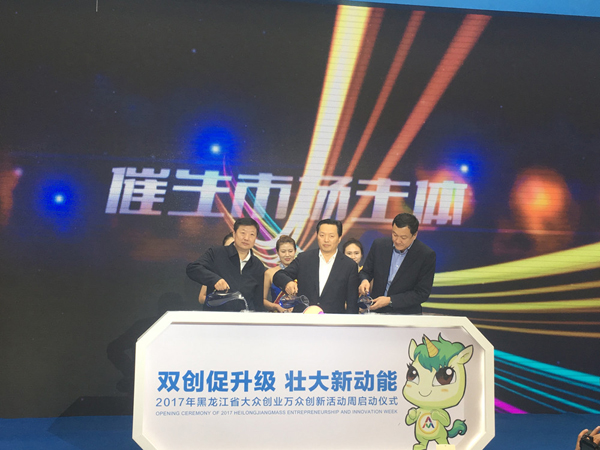 Tu1:黑龙江省常务副省长李海涛,哈尔滨市委副书记、市长宋希斌、市委常委、松北区区委书记高大伟见证双创活动周正式启动