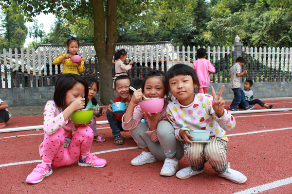 「学校的饭很好吃,我能吃一大碗!」读幼儿班的五岁的孟香被教的很好,大大的眼睛羞涩淳朴。进入小学,正赶上学生们的中餐时间。在富有土家民族特色的教学楼下、崭新的操场中,刚下课的学生们扬着欢乐的小脸三五成群的跑向食堂。