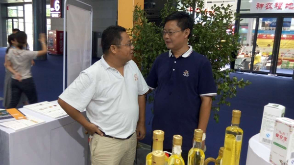 湖南省林业厅油茶办主任蓝成云(右一)视察林之神展厅