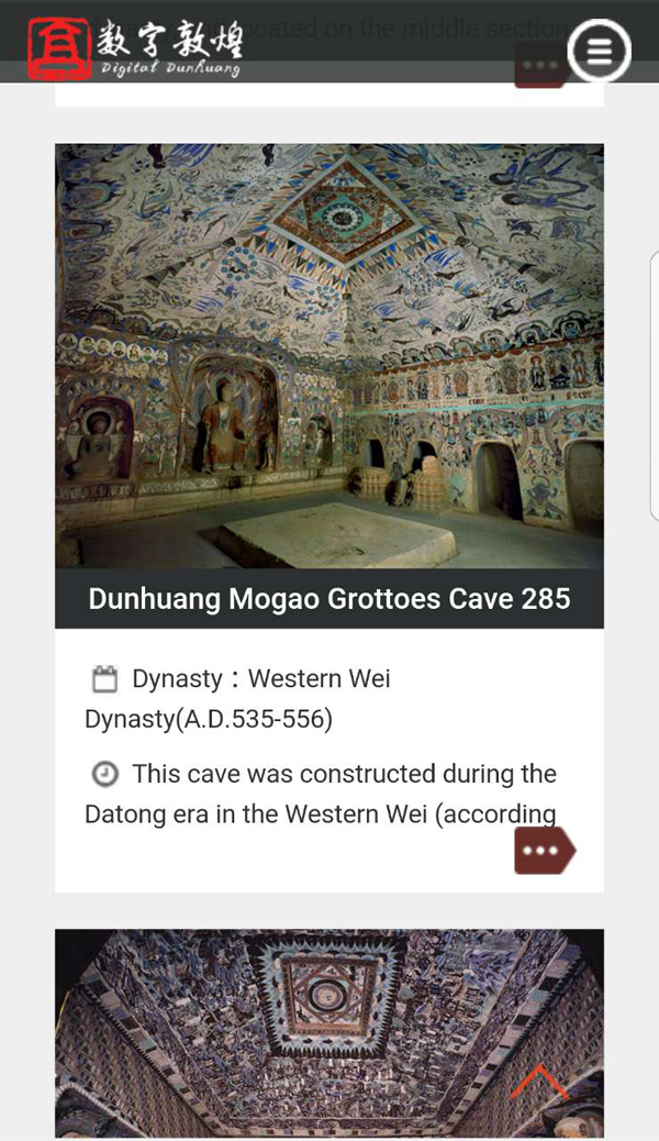 「数字敦煌」资源库英文网站地址是 www.e-dunhuang.com,这是敦煌研究院对「数字敦煌」资源库的中文版进行了全局的英文翻译,并且升级了数据检索功能,在检索栏中快速自动匹配检索的关键词,例如,输入17,会出现172、217、017三个数据,如果想要精确查询217窟,选择217,就可以查询到莫高窟第217窟。在检索结果的右侧,还记录了个人检索的历史记录和热搜词。