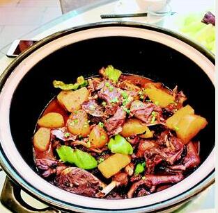 挑起一块鸭肉入口,酱香浓郁,鸭肉不柴不腻,软而不烂,紧实不塞牙,一口咬开,鸭皮上汁水弹动,能吃得出鸭肉本身的香味。最妙的是下面打底的白萝卜,炖到半透明,吸收了肉香和酱香,好吃到飞起,一大锅飞快地被大家抢光了。据说每天每店限量供应30只,来晚就抢不到了。