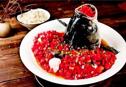 坛宗剁椒鱼头,是店里国庆期间要推出的新菜,食尚姐有口福尝了个鲜。这道菜一上来就夺人眼球,直径差不多有半米的大盘子里耸立着一个超大鱼头,覆盖着一层红彤彤的辣椒,引得直播镜头前的网友们惊叹不已,“哗,这么大的鱼头,看着我就要流口水啦。”“头都这大了,那鱼本身得有多长啊!”