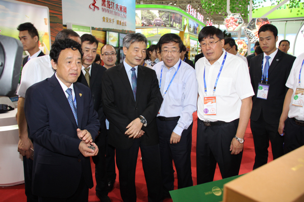 黑龙江省农委副主任巡视员白雪华、副主任李世润陪同全国政协副主席罗富和巡视黑龙江展馆
