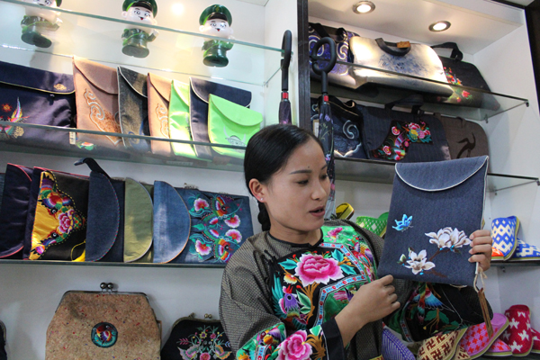如今在十八洞郵政工作的麻秀珍告訴記者,她原來在雙龍鎮上經營一家手機店,後來聽說十八洞村的郵局招人,果斷盤掉了自己的店來這裏上班。“現在的工作和我想的一樣!這裏每天遊客有千人左右,每天見到不同的人,很有新鮮感也很有趣!”結合當地民俗,郵政廳還開了賣特色苗繡的位子,麻秀珍說,十八洞是民風很淳樸的地方,很多遊客過來也喜歡買點當地特色產品,每個月苗繡位的銷售額大概有6000元以上。不但有苗繡,遊客還可以通過微信和她預訂臘肉等當地特產,線上銷售量也越來越多。