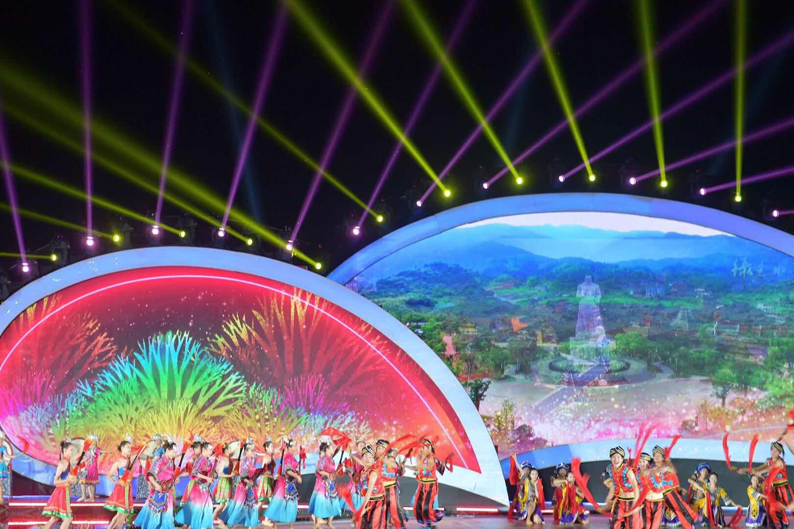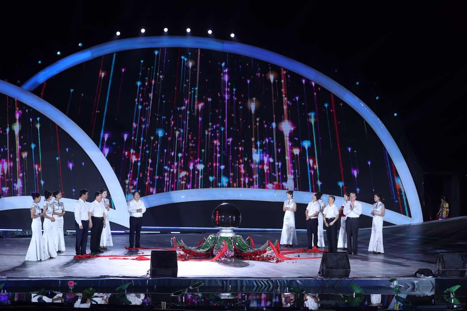 此次旅遊節開幕式依托山水實景舞台,采用VR技術、大型全息投影、多屏互動等現代尖端科技,按照“水韻洞庭”、“樓記天下”、“夢圓瀟湘”三個篇章展開。開篇歌舞《錦繡瀟湘魚米香》、童聲情景朗誦《嶽陽樓記》等節目突出了天下洞庭、水韻湘陰的地域風情風貌。特別是沙畫講述《敢為人先》從嶽州窯、左宗棠、嶽陽樓等人文自然景觀融入沙畫節目中,使嶽陽及湘陰深厚的曆史人文,淋漓展現湖湘人敢為人先精神。同時,晚會巧妙編排歌舞、脫口秀、小品、民樂、焰火等各類文藝表演,也全面展示全省14個地州市的精品旅遊資源。