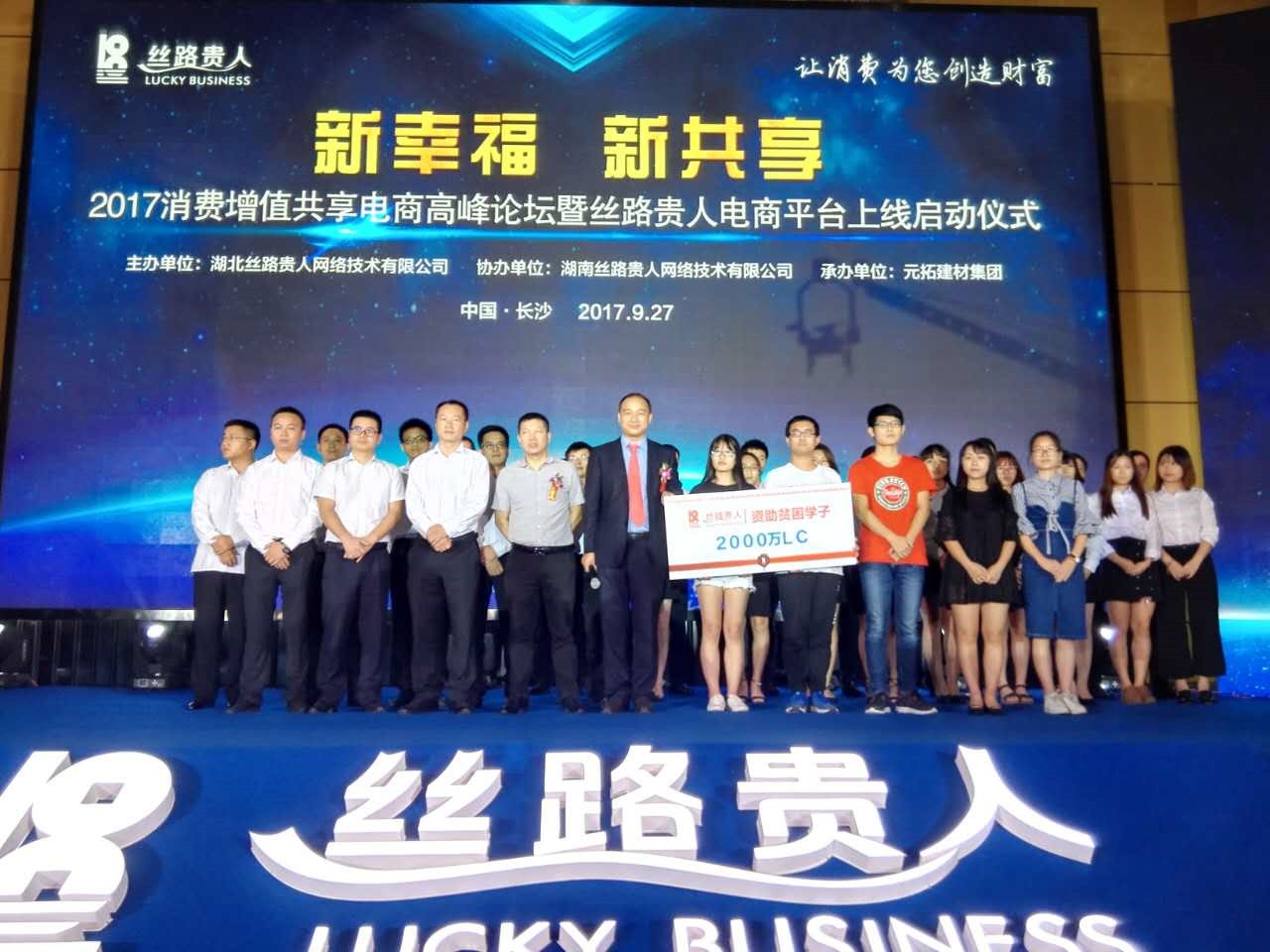 此外,絲路貴人“貴人相助 幸福共享”公益助學活動亦在當天啟動,湖南大學、長沙理工大學、湖南商學院大學作為高校代表出席了本次大會,據悉,本次公益活動將在全國500所高校與絲路貴人“一帶一路”我是演說家演講比賽同步進行,每名申請助學補助的學子將獲得2萬共享消費權。