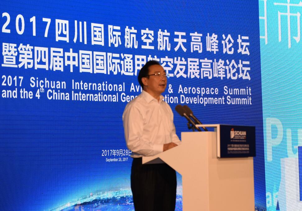 【香港商報網訊】記者梅超報道:9月28日上午,以“創新融合 區域引領”為主題,由中國航空學會、中國航空報社、中國宇航學會、四川省經濟和信息化委員會、四川博覽事務局、德陽市人民政府、四川航空集團有限責任公司共同主辦的2017四川國際航空航天高峰論壇暨第四屆中國國際通用航空發展高峰論壇在德陽廣漢市舉行。本次高峰論壇共有政府代表、軍方代表、行業協會代表、四川省各用戶單位、參展企業代表、境內外航空企業、通用航空公司、租賃公司、航空制造企業、金融機構、機場公司、航空園區、旅遊公司、旅遊景點等方面知名企業的400餘位嘉賓出席本次高峰論壇,論壇圍繞航空航天、通用航空的研發制造、產業運營、文化培養等多個方面展開深入討論與交流。