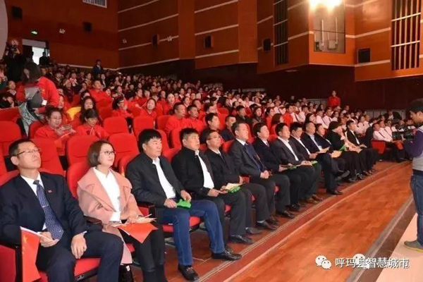 【香港商報網訊】 為熱烈慶祝中華人民共和國成立68周年,迎接黨的“十九大”勝利召開,推動邊疆文化的繁榮與發展,貫徹落實黑龍江省文化廳《關於在全省范圍內開展喜迎“十九大”系列活動的通知》要求,完成好呼瑪縣委、縣政府年初確定的重點工作任務,2017年9月29日下午2時,由呼瑪縣委宣傳部主辦,呼瑪縣文化廣電體育局、呼瑪縣文化館承辦的“喜迎十九大・紅歌頌祖國”幹部、職工、群眾歌詠大會在呼瑪縣長虹社區禮堂隆重舉行。呼瑪縣四大班子及副處級以上領導參加了大合唱開幕儀式,並率先參加了《沒有共產黨就沒有新中國》《歌唱祖國》歌曲的演唱。