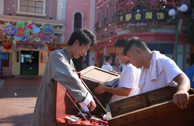 早上9:00,独具特色的“中华崛起”主题快闪开始,身着中山装、民国时期校服的学生,擦皮鞋的小贩,穿旗袍的古典美女,报童、黄包车……这些充满时代感的人物、元素,仿佛带领现场的游客穿越回到那个充满激情的年代,见证新中国成立的伟大时刻。一幕幕感人至深的场景、一出出激荡人心的大戏,通过新颖而精彩的快闪形式,演绎出满怀壮志、意气凌云的强国乐章!伴随着激荡人心的爱国歌曲,回顾那段辉煌的历史,共同展望美好的未来!