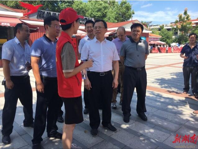 陳獻春一行對橘子洲景區游客服務中心、安全監控指揮中心、文明旅游志愿者服務站、旅游廁所等進行了實地檢查,詳細了解景區游客最大承載量管理、交通秩序維護、假日值班值守、應急預案落實和文明旅游引導等有關情況。
