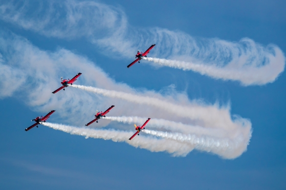 本届航展人气明星绝对属于五支世界一流的特技飞行表演队。来自拉脱维亚的波罗的海蜜蜂特技飞行表演队飞行转场近万公里,是首次来中国表演,经典的六机编队飞行在航展上大放异彩。与波罗的海蜜蜂编队飞行不同,来自西班牙的雷蒙·阿隆索和马西亚斯·阿隆索组成的西班牙双箭则更多的展现了精彩刺激的飞行特技,高难度动作层出不穷,让观众们惊呼不断。来自美国的空中动力和杰出飞行者在本届航展上除了精彩的编队飞行及酷炫的特技之外,还展现了自己的空中打字的绝活,在天空中打出“welcome to sichuan”等字样。文字在空中漂浮,让全场观众欢呼雀跃。