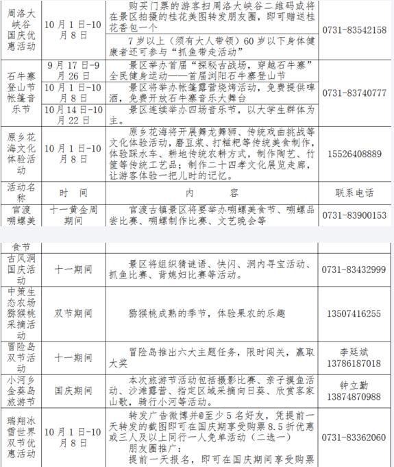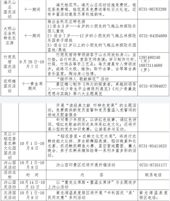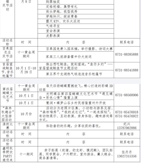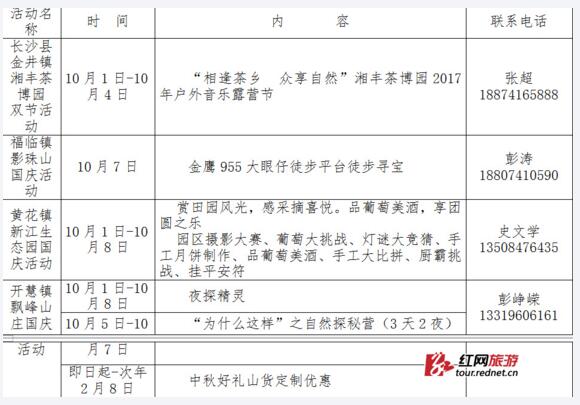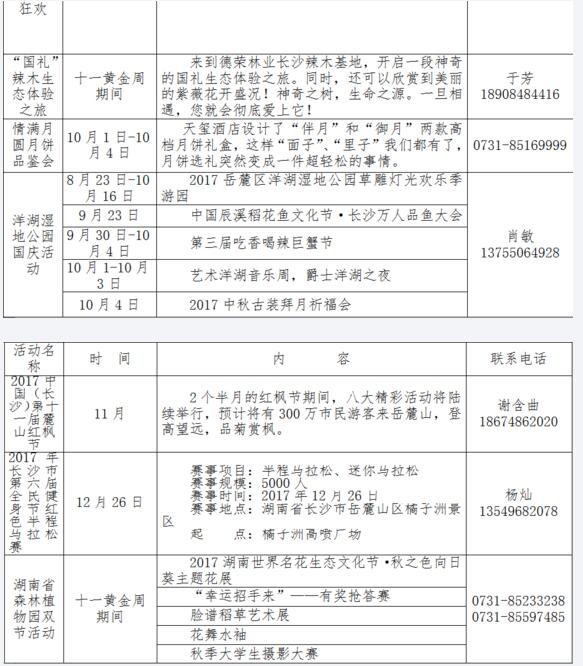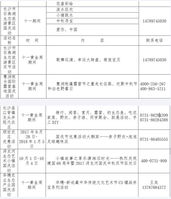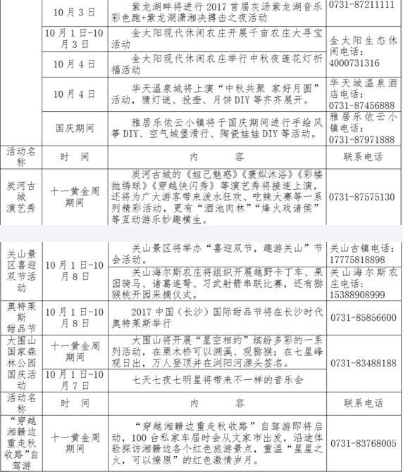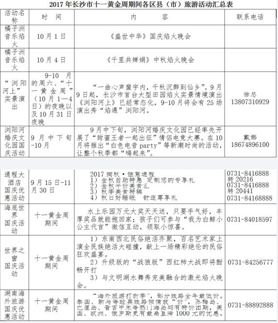 附:2017长沙市十一黄金周期间各区县(市)旅游活动汇总表: