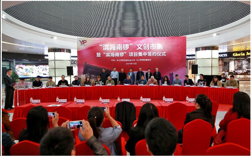 【香港商报网讯】记者邢宝华报道:在京津冀一体化的重磅政策推动下,经过天津自贸区商业发展局的多次洽谈,继2017年5月20日“滨海南锣”美食节之后,滨海新区中心商务区管委会再次联合北京南锣鼓巷商会,于2017年10月9日上午10点在中心商务区环球购举办“滨海南锣”文创市集暨“滨海南锣”项目集中签约仪式。中心商务区管委会党组书记、主任郑伟铭;中心商务区管委会党组成员、副主任史继平;中心商务区商业发展局局长郑长云、副局长叶帅、张亚博;北京南锣鼓巷商会会长徐岩、副会长田文杰、张雪松出席了本次签约仪式。