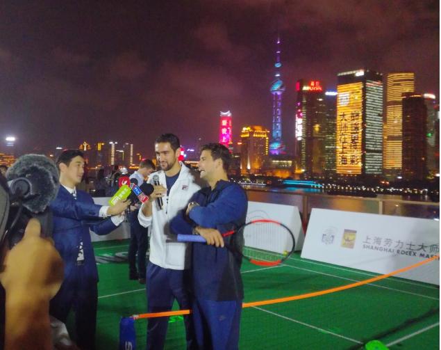 【香港商报网讯】记者杨眉报道:10月9日,由上海市人民政府新闻办公室与上海劳力士大师赛共同策划的“大师浦江夜”活动,呼应着浦江两岸迷人夜景,在外滩全新地标建筑—外滩金融中心BFC的复星艺术中心4楼天台“数字空中花园”拉开帷幕。此次活动邀请到了今年大师赛种子选手马林•西里奇和格里戈尔•迪米特洛夫,与上海的少年网球爱好者在迷你球场展开了寓教于乐的网球互动。