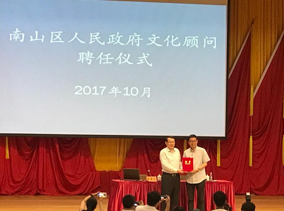 在当日下午举行的南山区委中心组(扩大)学习会上,王强代表区委区政府给王鲁湘颁发南山区政府文化顾问聘书。随后,王鲁湘进行了以《瓷行天下》为题的讲座,以明清300年中国外销瓷为例,深入阐释习近平总书记提出的“丝路精神”,分析中国与全球化的关系。