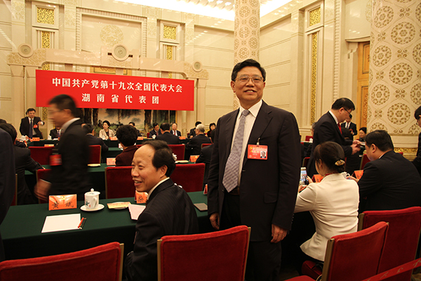 十九大代表贺安杰在接受本报记者采访后在会议现场留影。