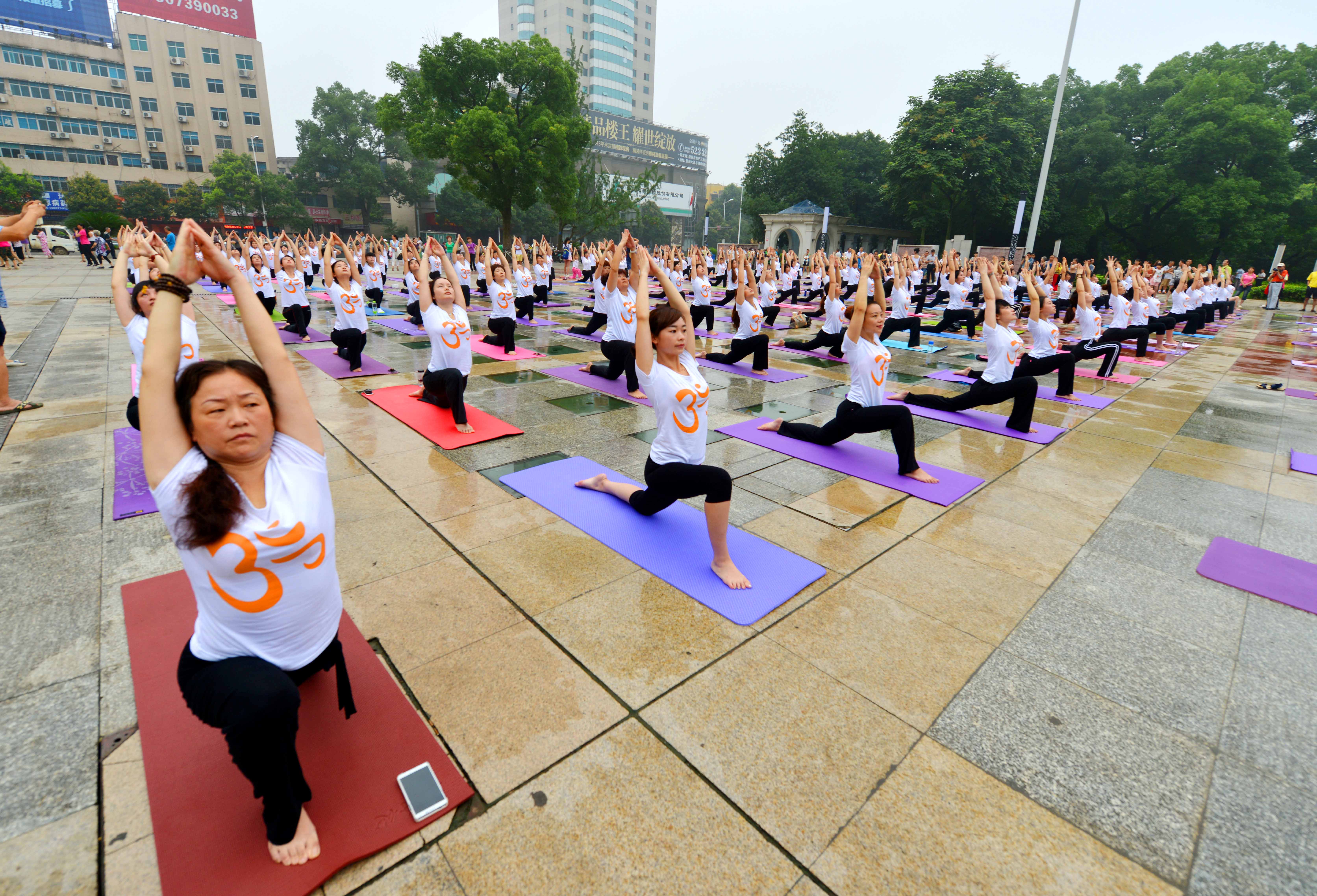 在邵阳市城南公园举办的国际瑜伽日大型公益活动。申兴刚 王义程 摄。