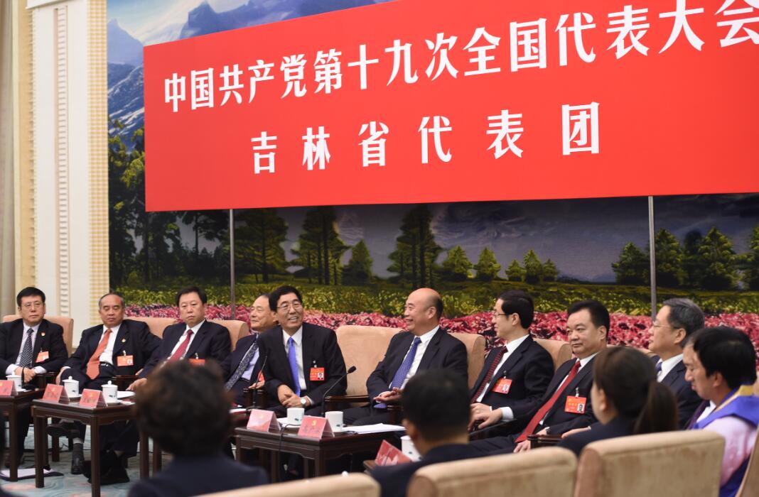十九大代表、吉林省委书记巴音朝鲁在吉林代表团开放日上发言。