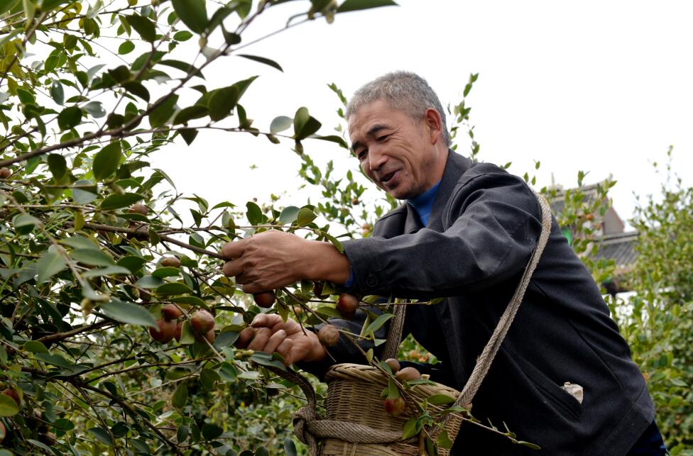 鱼塘村党支部书记姚敦科告诉记者,目前村里有老林3000亩,2015年新栽1500亩,家家户户都栽有油茶树,去年共结出新果10多万斤,产油3万多斤,产值达200多万元。