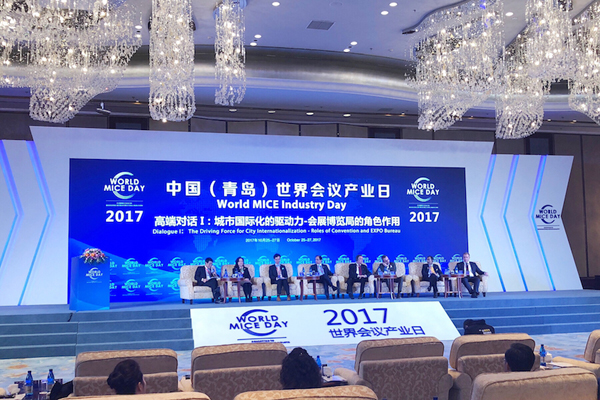 【香港商报网讯】记者齐薇然报道:10月25日,2017世界会议产业日在青岛举行,来自美国、德国、英国等48个国家和地区的近600位专业嘉宾出席本次大会。本次会议主题为「振兴丝路会议产业」,分为高端论坛、买家展商对接、现场考察等环节。